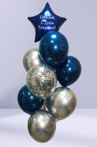 7 летексных шаров синего и серебристого цвета. Синий шар-звезда - 1 шт.
